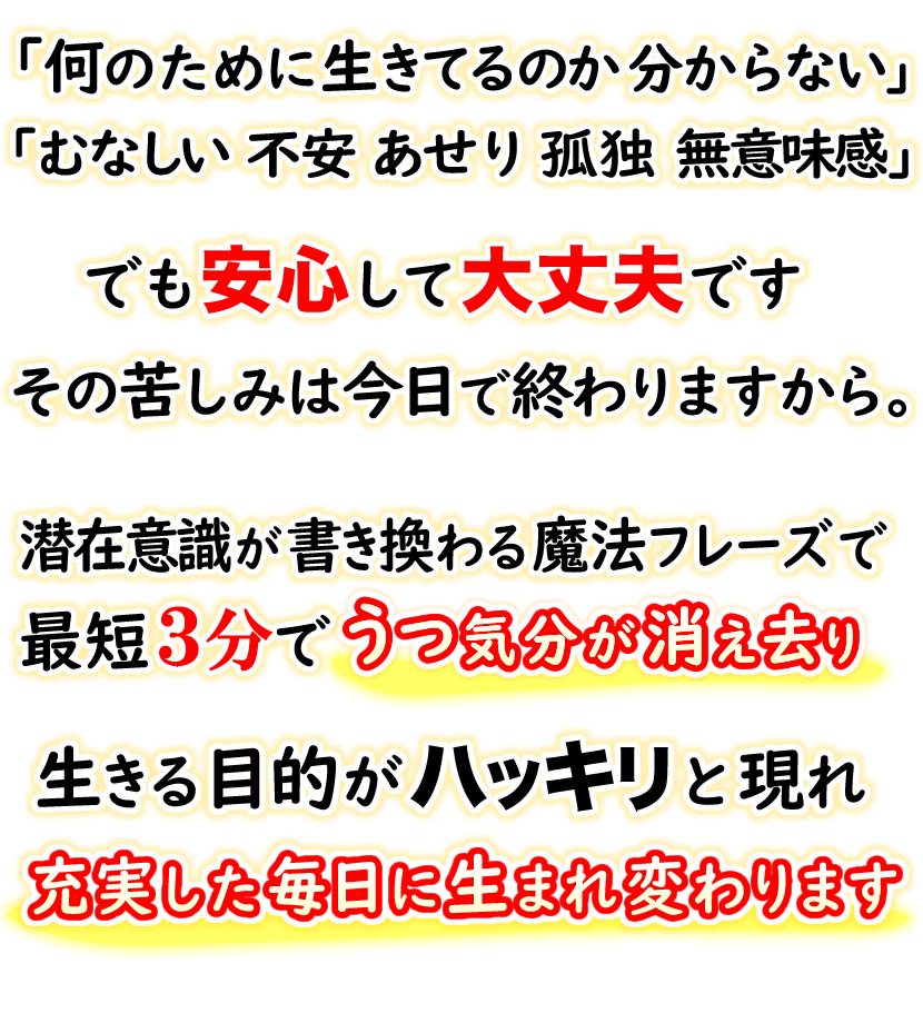 これからも長い人生が続く中で、また負の要素は降りかかってきます。ですが、ここで潜在意識をコントロールできるようになったあなたは、もう負のループにはまることはありません。自分で気付いて調整してことができます。